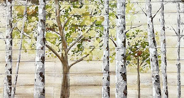 牆上的樹林畫作有很清新的氣息