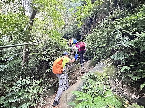 接下來就是一路上坡,過小溪澗,爬大石,還有幾處新倒的樹木橫陳,都要小心通過。
