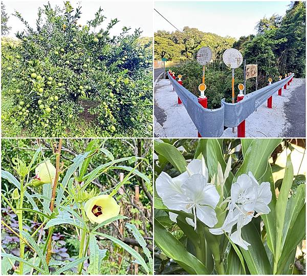~柑橘類果實滿樹、菜園~秋葵的花很漂亮、野薑花清香撲鼻來,民宿。